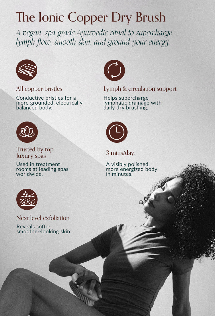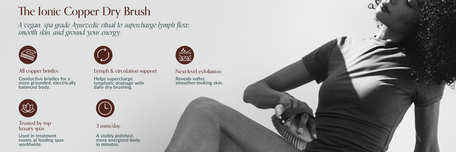 Our Ionic copper bristle body brush is the ultimate daily Ayurvedic detox tool with wide ranging health and beauty benefits.